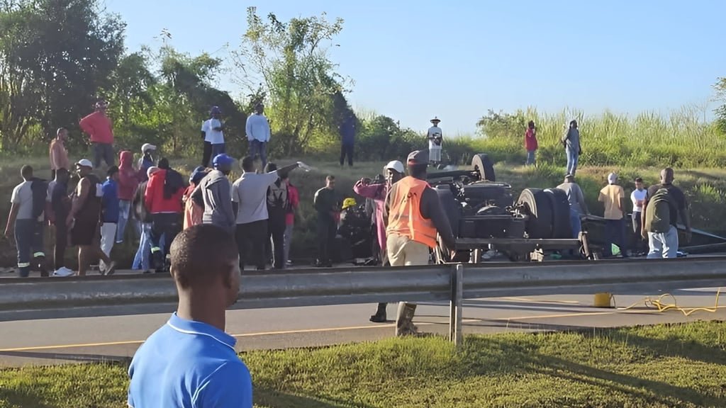 Según informaciones, uno de los heridos permanece en estado delicado, mientras que los sistemas de emergencia se trasladaron al lugar. El accidente se dio tras una patana cargada de productos comestibles, volcarse en la autopista.