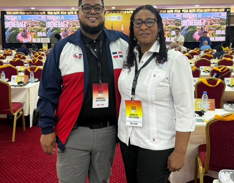 Marcel Vidal, encargado de inscripciones deportivas, y Dulce María Piña, jefa de Misión de la delegación dominicana. SANTO DOMINGO.- Dulce María Piña, jefa de Misión, y...