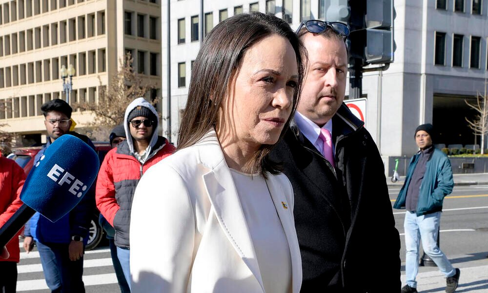 La líder opositora venezolana y Premio Nobel de la Paz, María Corina Machado, llega a la Casa Blanca este 15 de enero de 2026, en Washington...