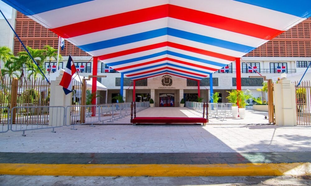 Explanada frontal del Congreso decorada para la ocasión. SANTO DOMINGO.- Todo listo en el Congreso para recibir al Presidente Luis Abinader este 27 de febrero para...