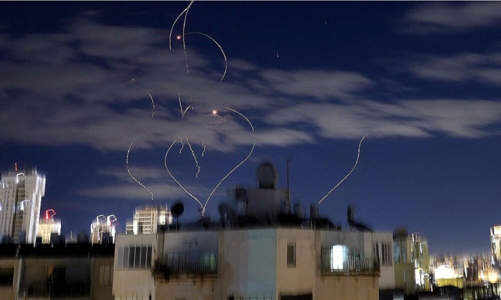 Estelas de cohetes en el cielo sobre la ciudad costera de Netanya, en el centro de Israel. Irán ha anunciado este lunes que ha lanzado sus...