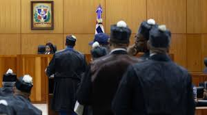 Con togas y birretes hexagonales, legendarios letrados se sublimizan en una especie de banquete de exquisitez culinaria, con golosinas como postre, en el deleite recreativo de alegar inocencia y exigir un juicio acorde con el estado de derecho a imputados de muertes masivas simultáneas en un corto tiempo (genocidio) por el desplome de un edificio acarreado por una obstinada negligencia e inexplicable descuido.