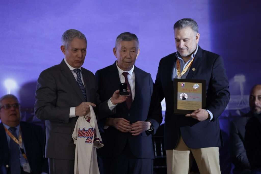 De igual manera, el Comisionado Juan Francisco Puello entregó el botón de oro de la Confederación de Béisbol Profesional del Caribe, atendiendo a su notable trabajo con la organización de Naranjeros de Hermosillo y su activa participación con los equipos de México en múltiples ediciones de la Serie del Caribe.