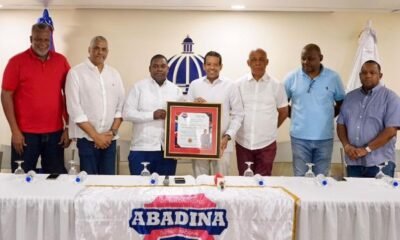 Edwin Castillo (Tatico), presidente de Abadina, le entrega un reconocimiento a Stalin Alcántara, vicealcalde del Distrito Nacional, al centro.Edwin Castillo (Tatico), presidente de Abadina, le entrega...