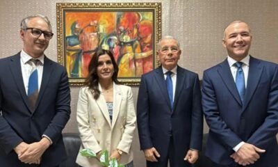 La embajadora, Leah Francis Campos, y el expresidente Danilo Medina; junto al agregado de Política y Economía de la sede diplomática, Ali Nadir, y el secretario...